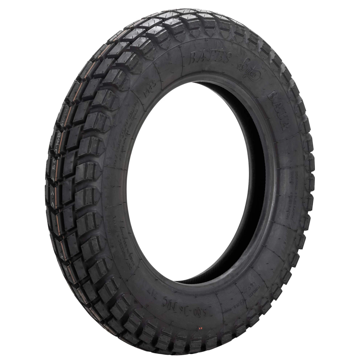 Gravel, rocks and roadkill – here’s a tire that knows no fear. Whistle into town, come back across the fields Steve McQueen style. Do some racing among friends on the neighborhood dirt track. Or what about that camping trip to the other end of the world you’ve been postponing all those years? The new Bates Baja can handle it all.