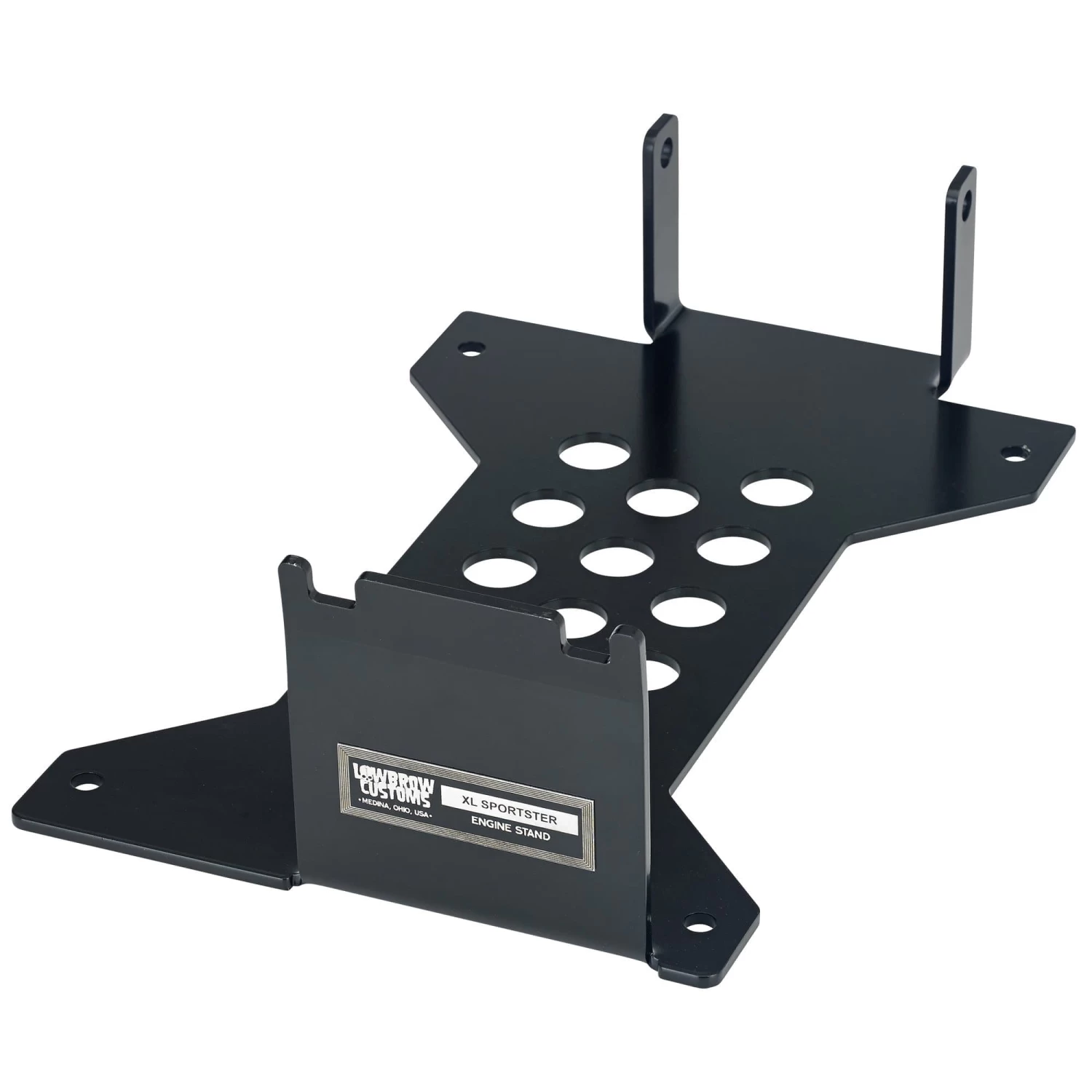 The heavy gauge steel construction and durable black powder coat make the Lowbrow Customs Sportster Motor Engine Stand simple to use and stand up to years of use and abuse. Perfect for cradling your Sporty motor while you wrench. This stand works perfectly with Ironhead Sportsters as well as Evolution models. Made in Ohio, U.S.A.